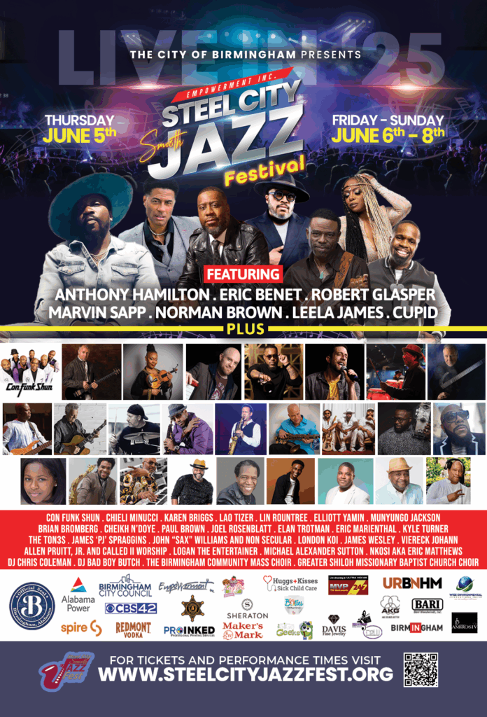 The Annual Steel City Smooth Jazz Festival will be June 5th – June 8th at the historic Linn Park featuring 4 days of live Jazz, R&B and Gospel from some of the worlds best performers! For tickets visit https://www.steelcityjazzfest.org/