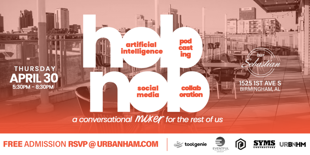 The idea for Hobnob came together organically through a conversation between Urbanham.com founder Russ McClinton and Bar Sebastian manager Will Harvill, centered on rethinking what networking could look like. Instead of the traditional one-to-many or panel-style format, the vision was to create a many-to-many experience—where everyone in the room has a voice. “We want people to come out, network, and actually talk about their challenges and what they need. These are intentional conversations,” said McClinton. Harvill agreed, sharing his interest in revisiting a similar concept he once explored called Hobnob during his time as owner of the popular Bizarre The Coffee Bar in downtown Birmingham. The ideas were ultimately combined under the name Hobnob—a traditional term rooted in conversation among like-minded individuals —reimagined to reflect the modern challenges of today’s small business owners and creatives, particularly as they look to integrate new technology into their everyday workflows.