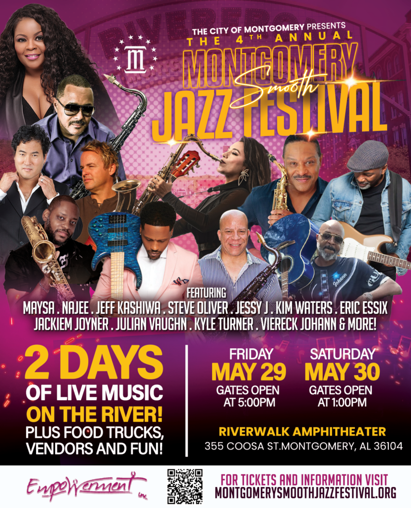 Set against the scenic backdrop of downtown Montgomery, this year’s festival lineup brings together some of the biggest names in smooth jazz, including Maysa, Najee, Jeff Kashiwa, Steve Oliver, Jessy J, Kim Waters, Jackiem Joyner, Eric Essix, Julian Vaughn, Kyle Turner, and Viereck Johann. With a mix of national talent and fan favorites, attendees can expect a weekend filled with soulful performances and unforgettable moments.