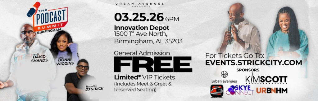 The summit, hosted by prominent Birmingham media personalities DJ Strick, David Shands, and Donni Wiggins of The Social Proof Podcast, is designed to bring together podcasters, content creators, community leaders, and innovators to explore the power of podcasting as both a cultural force and a business opportunity.