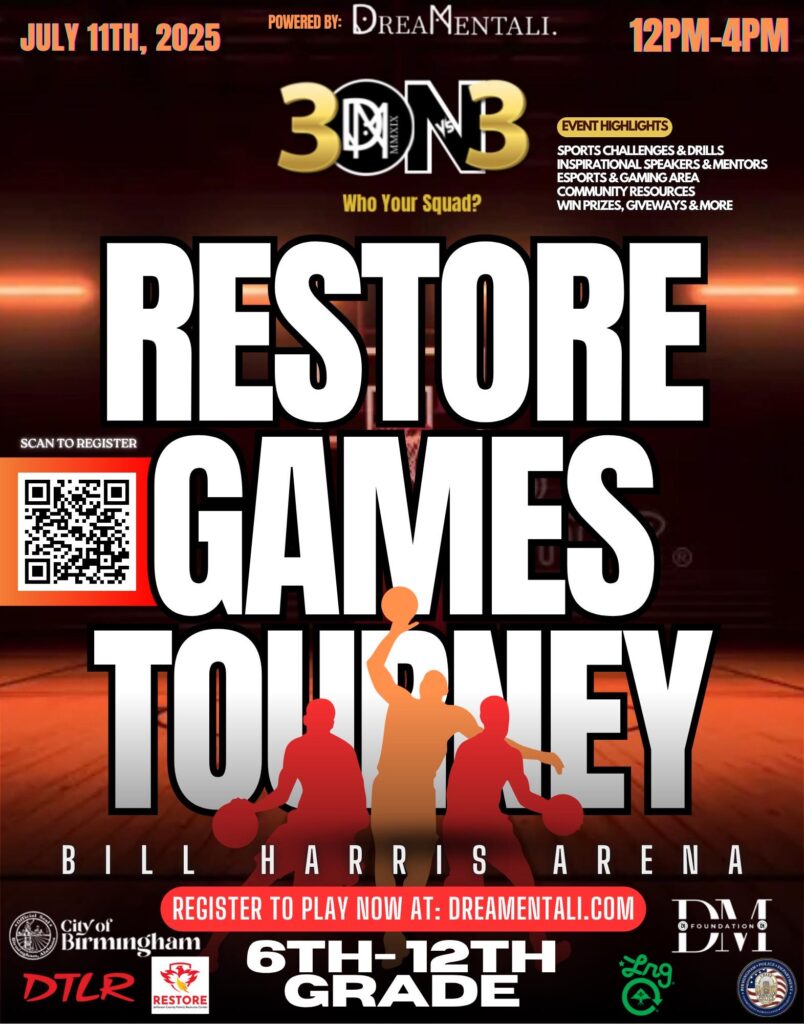 Join us for the Restore Games Basketball Tournament, as part of the 3rd annual Restore Games event focused on youth empowerment, community unity, and violence prevention.