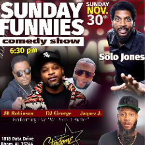 Sunday night showcase featuring JB Robinson, DJ George, Jaquez J, Mr. Peanut Butter, Solo Jones and host Bennie Mac.