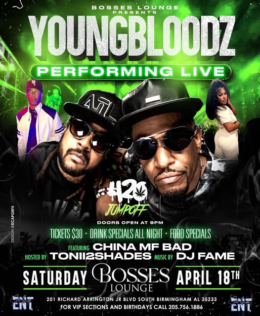 Get ready for a high-energy night as hip-hop duo YoungBloodZ hit the stage live at Bosses Lounge in Birmingham. Known for hits like “U-Way (How We Do It)” and “Damn!”, the duo brings their signature sound for a night of music, drinks, and good vibes.